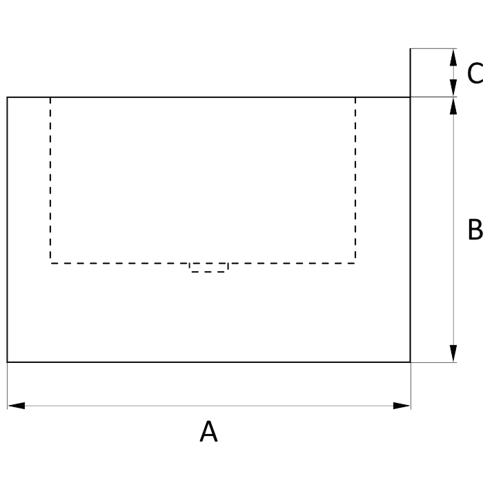 A = 450 mm B = 350 mm C = 50 mm Głębokość komory : 150 mm |