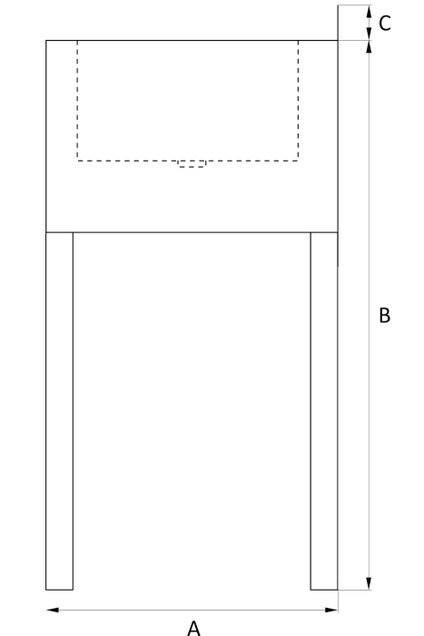 A = 450 mm B = 850 mm C = 50 mm Głębokość komory mycia = 150 mm |
